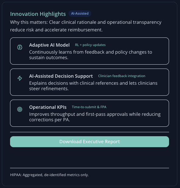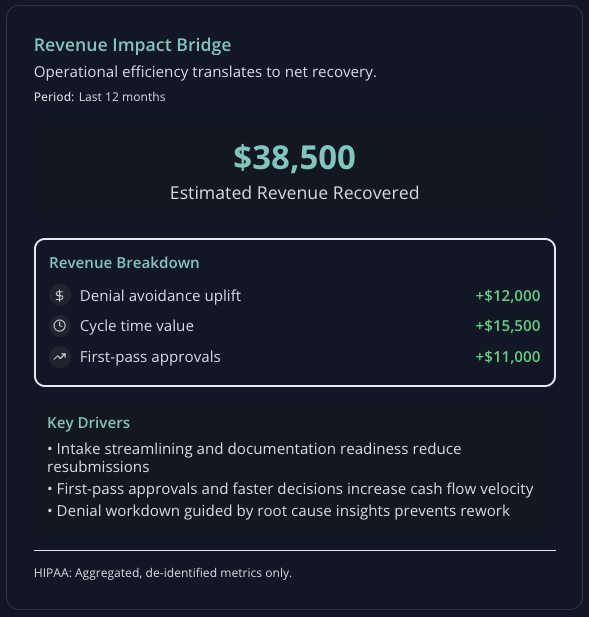 Policy-aware submissions and payer-specific justification increase first-pass approvals and reduce write-offs.